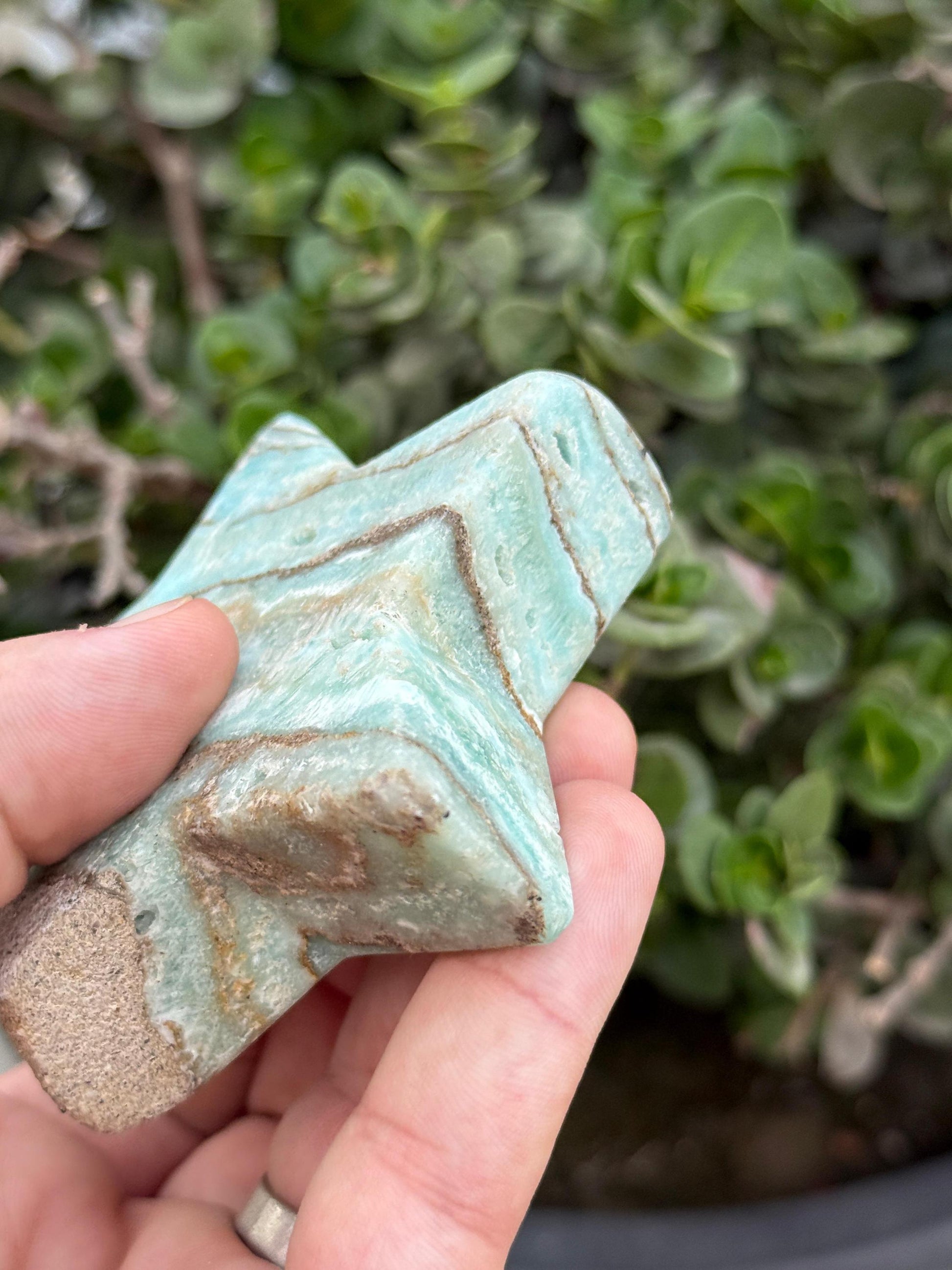 Shine bright with this stunning Amazonite star crystal, a hand-polished gemstone that captures the tranquil beauty of ocean waves. Its gentle aqua hues and natural beige veins make it a perfect addition to your crystal collection, altar, or home décor.