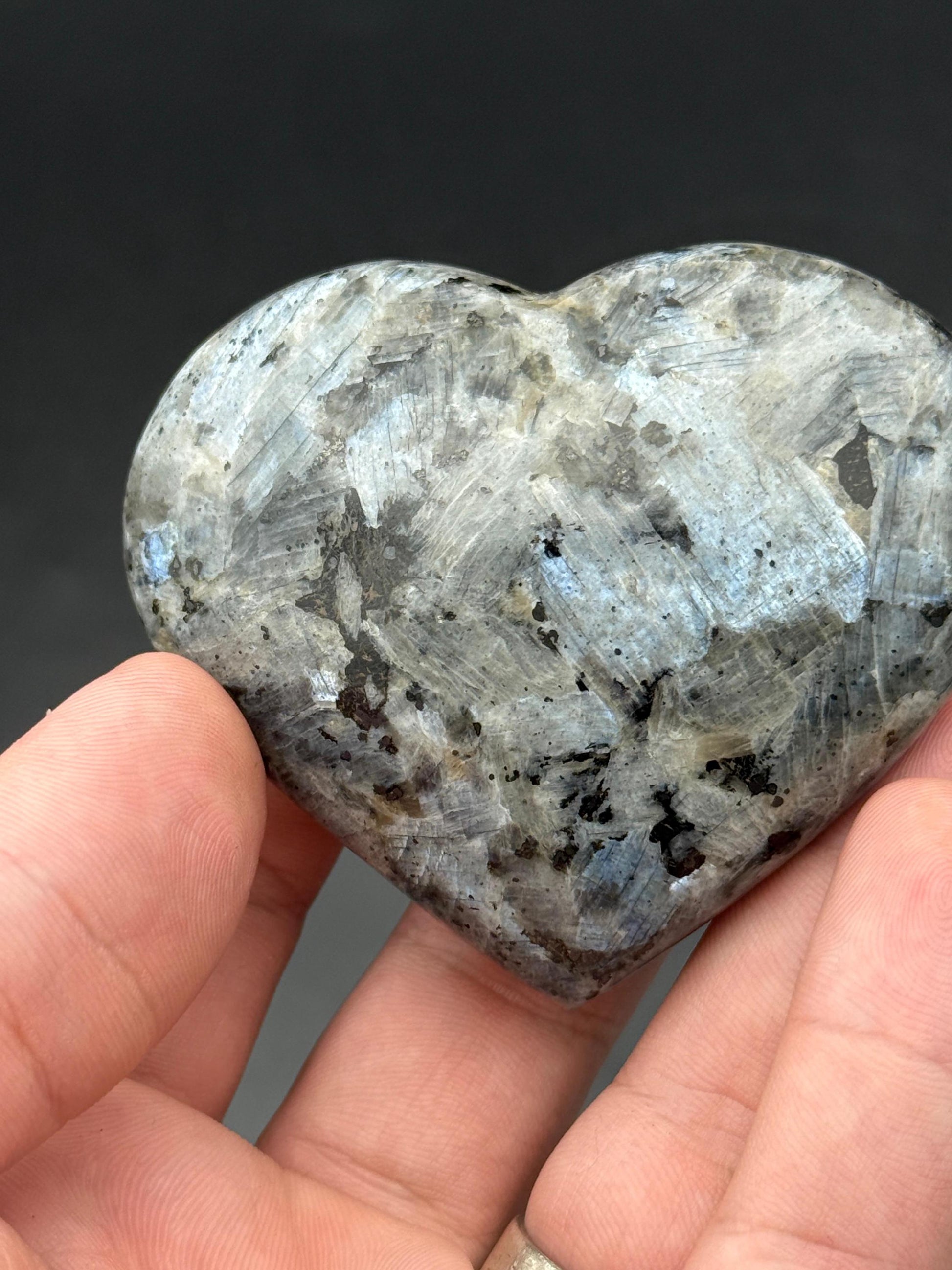 Labradorite Heart Crystal Polished Gemstone with Blue Flash