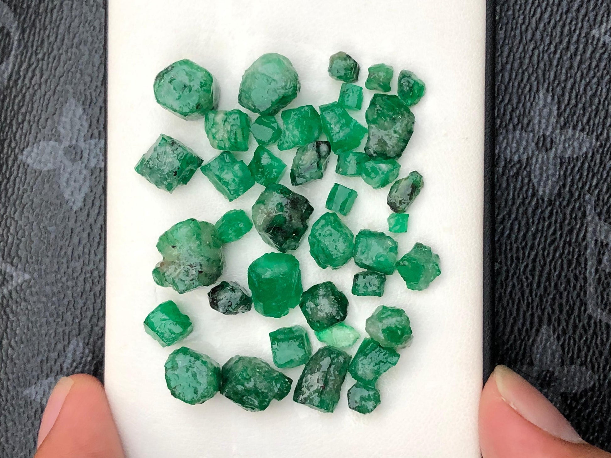 A beautiful parcel of natural emerald rough crystals sourced from Swat, Pakistan—renowned for producing some of the world’s most vivid green emeralds.